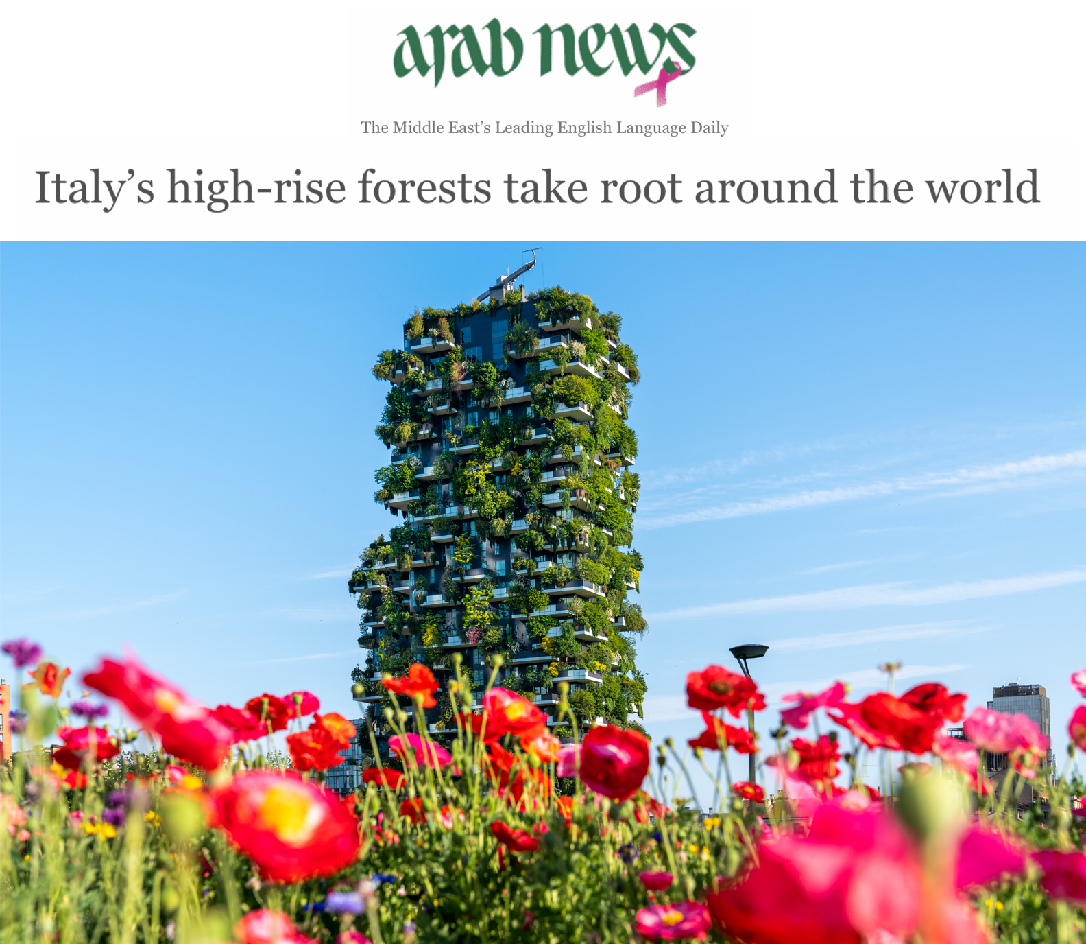 In Arabia Saudita i media puntano l’attenzione sul Bosco Verticale come modello innovativo di architettura sostenibile. Ideato dall’architetto milanese Stefano Boeri, il Bosco Verticale ospita 20.ooo alberi e piante che coprono interamente le facciate, dall’alto al basso. Il verde è un elemento essenziale dell’architettura (come spiega Boeri), in particolar modo efficace per combattere l’inquinamento. Il progetto ora è esportato in tutte le parti del mondo, dalla Cina ai Paesi Bassi.