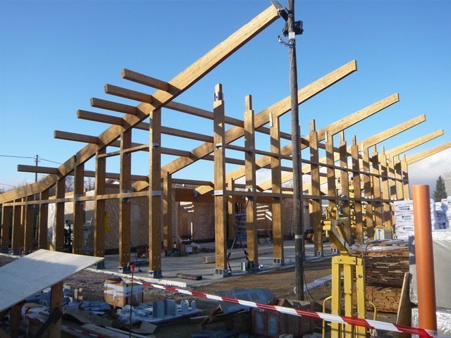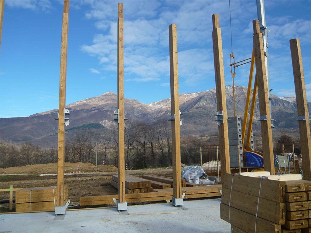 The construction of the new school refectory in Amatrice is going ahead. Day by day, the project is taking its shape, starting from the basement and rising up with the wooden pillars and the bearing walls, till the roof.