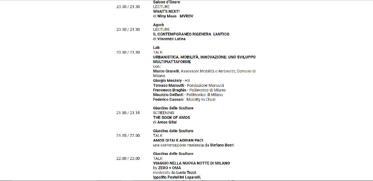 15 June 2017 MILANO ARCH WEEK AGENDA THURSDAY JUNE 15TH, 2017 Program of the events of Thursday, June 15th, 2017. http://www.milanoarchweek.eu/agenda-mar13.html