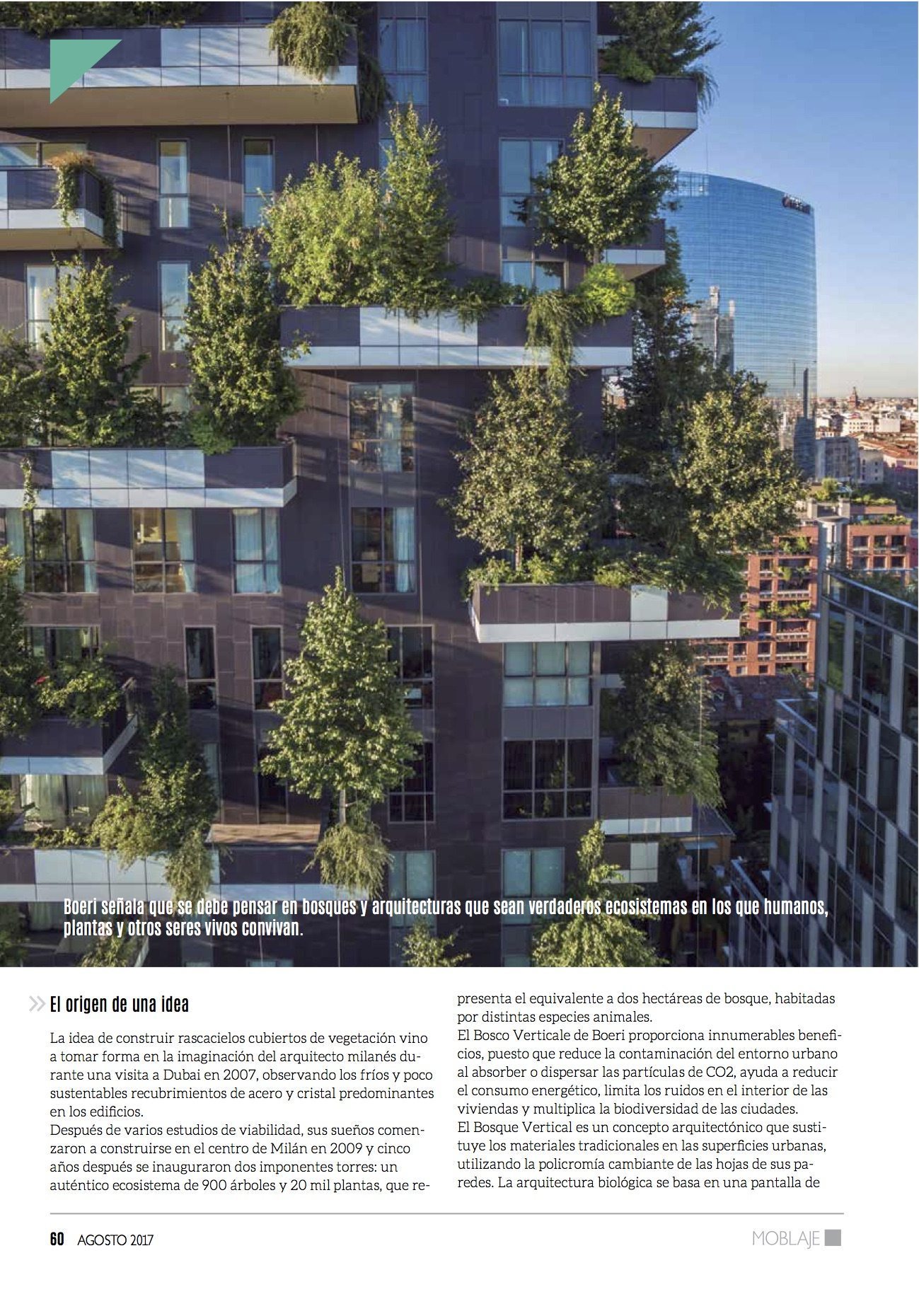 From the Vertical Forest at Liuzhou Forest City: on the Mexican magazine Momblaje Stefano Boeri related on the philosophy and concepts of bio-architecture and forestry. Projects to create a new generation of architecture are changing the future of the word.