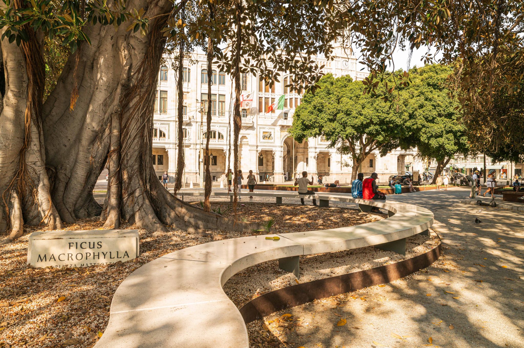Great relevance is given to greenery, in line with the city’s urban reforestation philosophy, to protect biodiversity, combat the effects of climate change and purify the air. With the planting of more than 200 new trees – in addition to the maintenance of all the existing tree component – and approximately 5.700 square meters of green areas, the creation of a new city park is guaranteed, easily accessible from the entire Via Roma front. By doing so, the project significantly contributes to increasing the presence of greenery, capable of retaining fine dust and absorbing CO2, as well as reducing the “heat island” effect and mitigating the microclimate.
