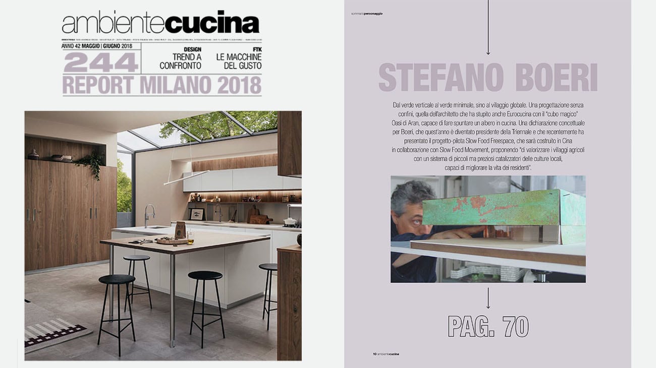 The experimental kitchen module designed for Aran Cucine on occasion of Salone del Mobile.Milano-EuroCucina 2018 is the first case in which Stefano Boeri Architetti have developed the anticipated vision of the Vertical Forest in the field of industrial design, an occasion that allows the expression of the idea of man-tree coexistence through a domestic furnishing item. Starting from the classic layout of the free-standing kitchen island, OASI defines a simple single dining table-cooking block that houses all the essential elements of a traditional living space like the typical Italian kitchen. The square-shaped free-standing block that results from this is thus developed as a well-expressed multi-function technological device able to support all the phases of the food cycle – storage, washing, preparation, cooking, serving, consumption and recycling, according to a process that is a key principle in Stefano Boeri Architects design: circularity.
